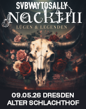 2006 begann dieses Kapitel, 2010 wurde es mit NACKT II fortgeschrieben – nun ist die Zeit reif für eine neue Runde, denn aller guten Dinge sind nackt drei: 2026 kehrt die Potsdamer Band mit NACKT III – Lügen & Legenden zurück auf die Akustik-Bühnen und taucht dabei tief in die eigene Geschichte ein. Wehmütig, durchgeknallt, verspielt und virtuos – SUBWAY TO SALLY zeigen sich einmal mehr von einer anderen Seite.