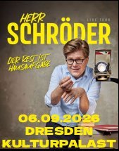 Herr Schröder ist wieder da! Endlich ist der staatlich geprüfte Deutschlehrer mit seinem neuen Solo „Der Rest ist Hausaufgabe“ wieder auf Tour. In Dresden läutet die Schulglocke dann am Donnerstag, 25.09.2025, 20 Uhr, im Alten Schlachthof.